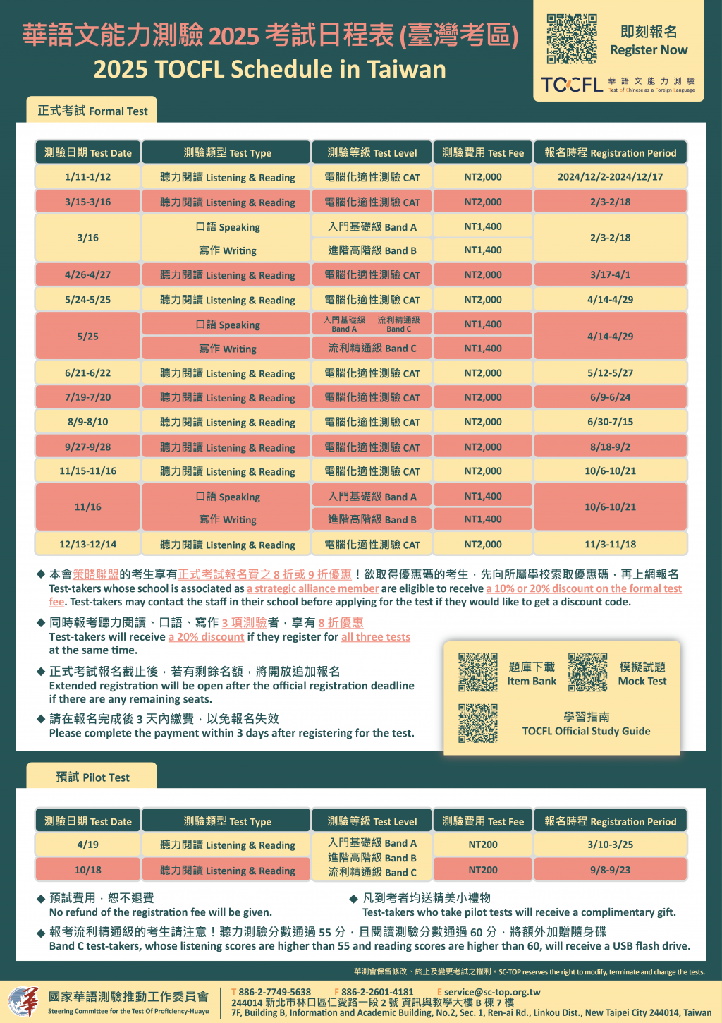(一) | 114年正式考試日程表:https://tocfl.edu.tw/tocfl/index.php/sign_up/tw/list/1。 |