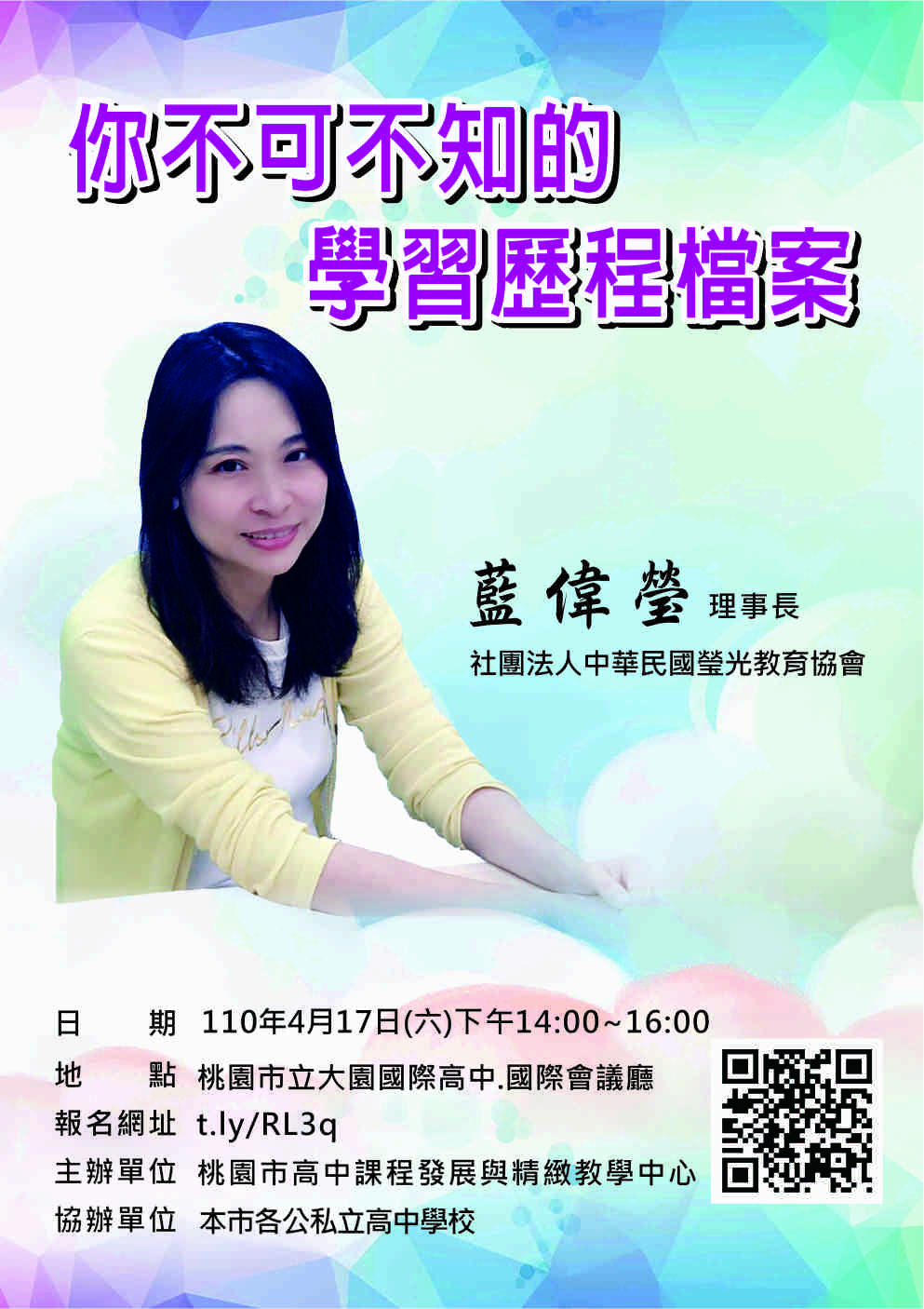 桃園市政府教育局高中課程發展與精緻教學中心特辦理「你不可不知的學習歷程檔案」講座,請家長踴躍報名。