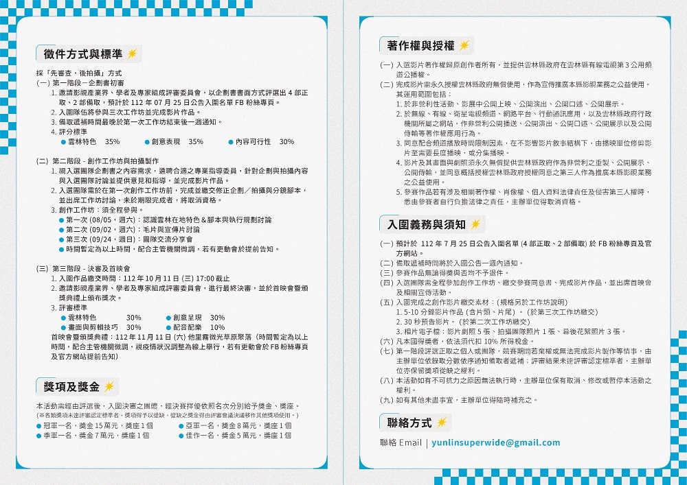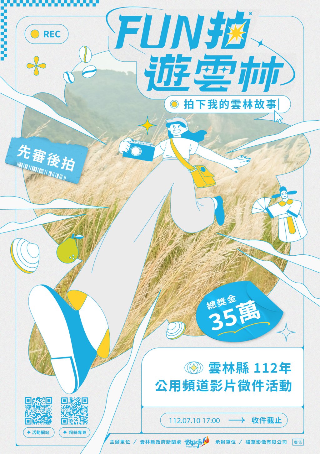雲林縣政府辦理「雲林縣112年公用頻道影片徵件-FUN拍遊 雲林」海報及DM電子檔